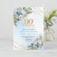 Stunning Boho Dusty Blue Floral Gold 90th Birthday Inbjudningar