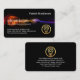 An all black cover features a colorful lightning that flashes across the card's face. It obtains power from your job title "electrician" and the caption remarks which you can change. Over at the top right corner lies your prestigious name. The contact details and a gold "bulb-tools" logo you can use are located near the base of the card.