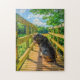 Snygg bild av sött stort berg/krig hund som går en promenad över floden på en sommardag.