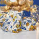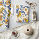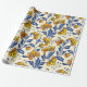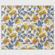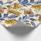 Seamless pattern of orange and yellow flowers with blue leaves on a beige background. The floral motif creates a lively, cheerful tone.