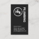 An elegant exquisite faux silver frame design in a dark grey cover. At the top of the card, inside the silver circle is the "plumbing service" signage. Just below this is your prestigious name and the contact details.