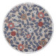 Seamless floral pattern featuring stylized dark blue leaves and multi-colored flowers in muted terracotta, gray, and white against a beige background.