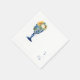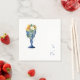 Solrosliknande blommigt och härdad bröllop-cocktailnapkin. Gråt. Koboltblå text.