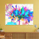 De här retcherade Kanvastrycken har en enastående vattenfärgsregnbåge i Dahlia med rött, akvablått, Magenta, limgrön, Lila, Gult och Orange.