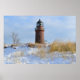 Sturdy Lighthouse på en Rocky Kusten på vinter Poster