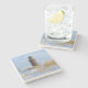 En robust rött fyr står i ensam och vaktar haven på vintern. Den grova och klippta marken är täckt i snö med vetegräs som blåser overksamt i vinden. Det väcker en känsla av solidaritet. Ett blå himmel med vita kloka moln.