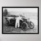Zazzles insamling av fotografier av vintagar har ett fantastisk av klassiskt bilder som sträcker sig från historiskt till vismiskt. Detta minnesmärke poster en återgivning av ett fotografi av en kvinnlig mekaniker som arbetar under huvan av Stutz Weightman Speciell nr 26 om Benning tävling track, Washington, DC, area, taget 1926.