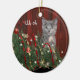Gulliga utspädda looks för calicokattunge upp från stupad jul för älskare för en julgrankatt semestrar guiltily den keramiska prydnaden och något att säga uh oh