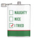 NewParkLane - flaskan med rolig jul citerar "styggt, trevligt, försökte jag" i grönt och rött.