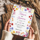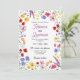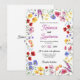 Meddela om din speciella dag med denna chic vildblomsteräng botaniska bröllopsinbjudan inspirerad av den naturliga skönheten hos blommande fält och romantiska landsbygdsmiljöer. Ömtåliga ängsblommor och graciösa botaniska element skapar en charmig blomsterkomposition som känns fräsch, luftig och naturligt elegant. De livliga blommorna inramar stilsäker typografi och ger designen en balanserad look som framhäver dina bröllopsdetaljer med modern charm och mjuk naturlig skönhet. Perfekt för par som planerar en trädgårdsceremoni, landsbygdsfirande eller utomhus naturinspirerat evenemang, introducerar denna inbjudan din bröllopsdag med färgrika ängsblommor, botanisk elegans och
