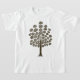 Ett träd-motiv i hand plockade i en penna och bläck stil med klumpar av löv spridda längs grenar.
