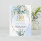 Stylish Blue Peony Gold Frame 90th Birthday Invite Inbjudningar