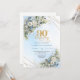 Celebrate a milestone moment with this elegant Sweet Sixteen invitation, featuring a refined watercolor design of dusty blue florals blended with soft white flowers and fresh eucalyptus greenery. Framed by a shimmering gold glitter border and paired with graceful script lettering, this invitation sets a sophisticated tone for a truly unforgettable Sweet Sixteen, Sweet 16th, or 16th birthday celebration.