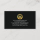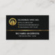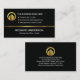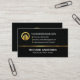 Card features an upper box pattern design with a lower black layer that is demarcated by a gold striped line. At the top is a gold global logo you can use alongside its business name. Directly below this are the contact details in their respective gold buttons. Near the base of the card you have your prestigious name and the job title.