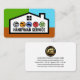 A building frame is surrounded by 3 colors representing the sky, flora and fauna and the ground landscape. Inside the black building frame are colorful handyman tools that can represent some of the work or service that you offer. Just underneath the tools is the business name "HANDYMAN SERVICE" which you can change.