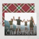 Christmas photo cards feature your favorite photo with your names and Merry Christmas in chic lettering on the front and a sparkly holiday plaid on the back.