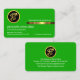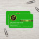 An all green cover is accentuated by a faux gold tab near the card's center. Riding on this gold tab of success is your business name with a creative gold "letter-e" logo you can use in the opposite direction. The letter-e can represent "electrician", your name or possibly the business name etc. Below the logo lies your prestigious name, job title and the contact details with a slogan caption in the opposite direction.