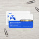 A white and blue layered cover is demarcated by a faux gold tab near the center. Riding on this gold tab of success is your business name with a creative leaking blue faucet logo you can use in the opposite direction. Below the logo lies your prestigious name, job title, contact details with a slogan caption in the opposite direction.