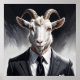 A highly detailed, surreal portrait of a goat with realistic features dressed in an elegant black suit and tie. The image blends anthropomorphic fantasy with sharp fashion styling, using monochrome and metallic tones to create a dramatic, polished, and modern visual aesthetic. (PLEASE! - See also other new collections for more choices) ((Attention!!! - By changing the size of the product, the Design picture can be shifted, it can be adjusted to the new size by clicking on the button - “Personalize \ Edit using Design Tool”, I always leave the opportunity to change the size and position of the Design on the product to your taste.))