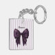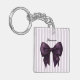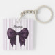 Embrace chic simplicity with this stylish acrylic keychain, showcasing a stunning deep purple bow centered on a backdrop of delicate lavender and white stripes. The name is elegantly presented in a classic font, adding a personal and refined touch to the design. This accessory is perfect for those who love a blend of bold color and subtle patterns. It's a practical and fashionable way to keep your keys secure and easily accessible, while also adding a distinctive flair to your everyday items. The durable acrylic construction ensures this beautiful piece will last, making it a wonderful everyday companion.