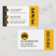A white cover features a vertical grey and yellow taxi colored striped design. The grey layer houses your business card details in their respective yellow buttons ; Change them accordingly to suit your own service needs. The business name is inside the yellow layer and is held vertically.