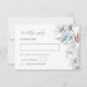 This wedding response card features turquoise rose gold layered flowers on a white background. Matching invitation available.