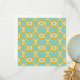 Stylized geometric pattern with bold orange hexagons and white details against a teal background, forming a repeating, symmetrical design.