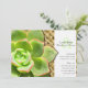 Sempervivum--också bekant som "levande för evigt" eller "hönan och chickar",--är ett perfekt tema för ett bröllop. Denna inbjudan presenterar ett stylized foto av den suckulenta växten och burlap. En härlig nostalgisk landinbjudan. NOTERA att alla inslag SKRIVS UT verkställer. (I-förmiddagen berättade att blomsterhandlare ser till denna som Echeveria.), Visat på standart mattepapper--känselförnimmelsen frigör för att förbättra, om du föredrar.