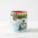 Snögubbe njuter av en julscen från en pansartavla. Njut av din nästa hett att dricka från den varmhjärtade snöscenen i mugg.