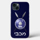 En bild av Maccabees sköld och två spjut. Skölden är skriven med en lejon text som lyder "Yisrael" (Israel) i alfabetet Paleo-Hebrew. "Maccabee" förekommer också i modern hebreiska. Mackorna var judiska rebeller som befriade Judea från det självstyrande imperiets ok. Chanukkah är inte bara en festival mitt på vintern med ljus och frigjorda delikatesser, utan firar en militär seger och säkrar religiösans frihet över det självstyrande imperiet. Dessutom var upproret ett civilt krig där de Judar som var lojala mot G-d och de som hade antagit självmord.
