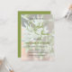 Denna saftiga blomsterbakgrund med subtil opacitet för bröllopsdusch-inbjudan ger alla detaljer på framsidan med en komplementär enfärgad grön på baksidan. Anpassa textfälten, ta bort eventuell text och/eller redigera med hjälp av designverktyget för att välja en typsnittsfärg, storlek och stil som du föredrar.