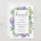 Inbjudningskort för möhippan underbar för brunch eller luncheon med vattenfärgade subkutana i skuggor av grönt och lila, eukalyptus löv och botaniskt grenar med guld accent gräns. Anpassa med din information så att bruden blir. Klicka på "klicka för att anpassa ytterligare" om du vill ändra teckensnittet stil, storlek eller färg.