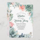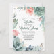 Succulents Greenery och Rosa ros Girl Baptism Inbjudningar
