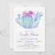 Succulents par dusch/möhippa-inbjudan. Inbjudan har violett lila och blå suckukaktus och blommönster.