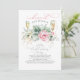 Guld löv har en självklar grön och rosa blomma brunch och bubblande inbjudningskort för möhippa