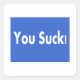 Berömd Blue-bakgrund med "You Suck!" tryckt i vitt.