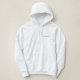Sudadera blanca básica con capucha, de algodón, con texto en el delantero derecho e imagen relacionada con la fotografía en la trasera.