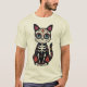 Celebrate Día de los Muertos (Day of the Dead) with this festive cat design. The shirt displays a stylized cat face in sugar-skull art style, complete with colorful marigolds and intricate patterns. It’s perfect for fans of Mexican folk art or anyone who loves unique, cultural designs. Printed on a solid tee, the vivid artwork pops with color. Wear it on the holiday or any day you want a bold, artistic statement that also pays tribute to cat family members passed on.