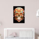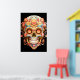 Sugar Skull design, in bright colors, on a wall poster. Celebrate Day of the Dead, November 1-2.