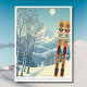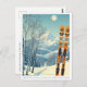 Hej från de snöiga bergen vid Sugarloaf Mountain Maine, USA! Vi hoppas att du har en underbar skidestination. Detta vykort visar ett vackert blågrått bergslandskap med retro-skidor i ett orange, tribal-inspirerat mönster.
