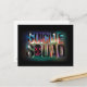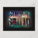 Teknisk 3D Suicide Squad-logotyp med Skull i brev Q. Färgad brev på svart bakgrund.