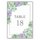 Botaniskt bröllop-bordsnummer med ram dekorerat med grönt och lila vattenfärgade subkutenter. Bordsnumret i elegant bröllop har underbart naturligt inslag och är perfekt för en bröllop i öknen i vår eller sommaren.