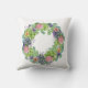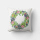 Lyft upp möblerna med den här dekorativ kudde, med en lush-krans av suckulenter, rosa, blommor och persikoblommor och vidrör av lila löv.