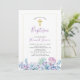 Fira din speciella dag med denna vackra dopinbjudan design. Denna design har vackra Sukulenter blommor och guldbelagd textur kors. Du kan anpassa all text och bakgrundsfärgen.