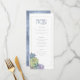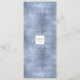 Unikt typsnitt, färgstarka vattenfärgsuckor och glitterbakgrund i mjuk dammblått är högdagrarna för dessa bröllop-produkter som blandas och matchar varandra. Den här vackra menyn innehåller en mall som du kan använda för att redigera menyval tillsammans med bridens och gruppens initialer och bröllop datum. Ett glansigt, texturerat mönster, i ljus- och mörk-toner av dammigt blått, lägger till en kontrasterande bakgrund på motsatt sida. Sök i ID515 om du vill visa alla matchande produkter i den här uppsättningen.