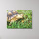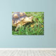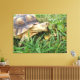 Sulcata Tortoise, Mouth Open, Grazing in Grass Canvastryck