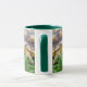 Fotografi av tortoise av sällskapsdjur Sulcata, Edwina Sulcata, bete, öppen mun, i gräsbevuxen gräsmatta. Bild tryckt på båda sidor om mugg. Mugg färg, storlekare och stil är anpassade.