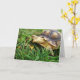 Sulcata Tortoise tar stor Bita av Dandelion Löv Kort