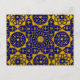 Guld- och lapisvykort som förskönas med invecklade geometriska mönster. Denna design baseras på en upplyst målning som jag gjorde, inspirerade vid taket av den SultanBarquq moskén i Cairo.