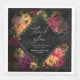 Lush blommigt i ljust, varmt färg, från korall och ro rosa till gyllene gult kombineras med livskraftiga, obsidiska bakgrunder till ge biet i detta elegant bröllop svit en mörk, moody ambiens. Den pappra napkin från bröllop har många blommor runt ett diamantformat ram för att hålla namn, bröllop-datum och ett personligt budskap. Sök i ID829 för att se den fullständiga samlingen.